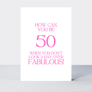 Pink 50th birthday card with a simple, stylish design - celebrating turning 50 and looking fabulous.