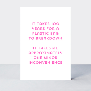 Find the funny side of those slight breakdowns faced at a minor inconvenience. This Quip Plastic Bag Breakdown Card makes light of those daily meltdowns!