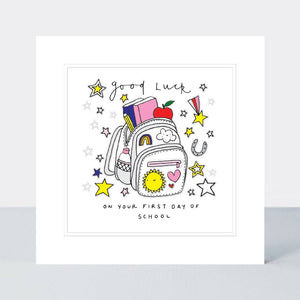 Pocket Rocket Good Luck 1st Day Pink Rucksack Card
