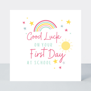 Make their first day at school special with this adorable card! Featuring vibrant rainbows and good luck wishes, the Rainbows First Day of School Pink Card is the perfect way to send positive vibes. With its bright colours and thoughtful design, it's sure to put a smile on their face.