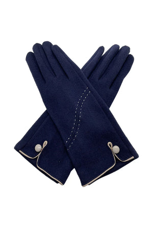 Thermal Felt Navy Gloves with Stitch & Button Detail