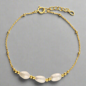 Gold Plated Sterling Silver Trip Pearl Bracelet