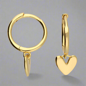 - These pretty gold hoop earrings have a cute hanging heart charm, they're simple enough for everyday wear and special enough for any occasion.