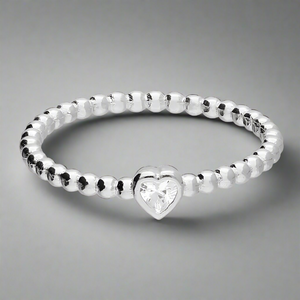 Sterling Silver Heart Beaded Ring