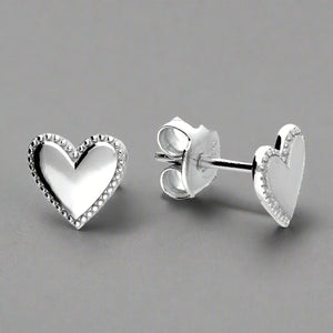 Sterling Silver Heart Stud with Beaded Edge Earrings