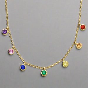 Sterling Silver Multi-coloured Rainbow Droplets Necklace