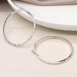 POM Large Silver Plated Bobble Hoop Earrings