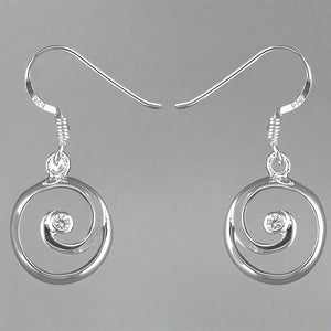 Sterling Silver CZ Centre Swirl Hook Earrings
