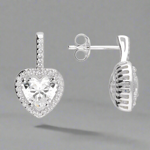 Add a touch of elegance and sparkle to any outfit with our Sterling Silver Stem and Heart Halo Cubic Zirconia Stud earrings. Crafted with high-quality sterling silver and adorned with a cubic zirconia heart crystal, these earrings are the perfect accessory for any occasion. Give the gift of beauty with these stunning earrings.