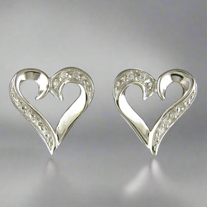 Sterling Silver White CZ Open Heart Stud Earrings