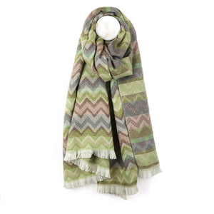 POM Sage Green Chevron Stripe Scarf,