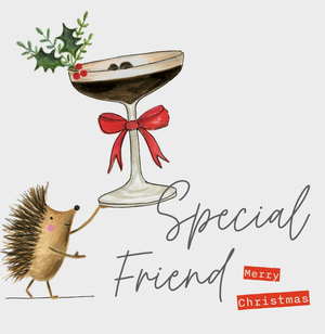 Special Friend Merry Christmas - Hedgehog Holding Cocktail Glass Card