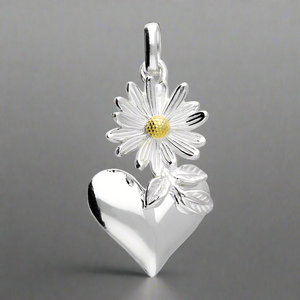 Iris & Miel Sterling Silver Daisy and Heart Drop Pendant
