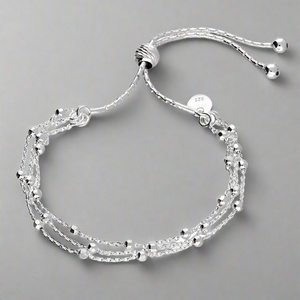 Expertly crafted from high-quality sterling silver, this triple-stranded bracelet is adorned with delicate silver beads for a touch of elegance. With an adjustable slider chain, this piece can fit a variety of wrist sizes. Perfect for any occasion, it makes a thoughtful gift for a special person.