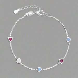 Sterling Silver Multicolour CZ Heart Bracelet
