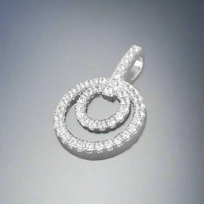 Sterling Silver CZ Double Circle Necklace