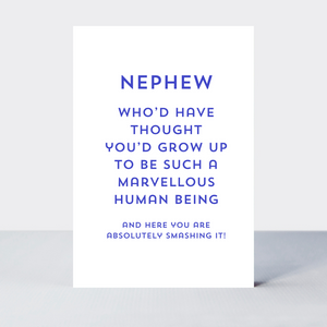 Celebrate your remarkable nephew with the Quip Nephew Card. Acknowledge your marvelous bond with this card that is sure to bring a smile to their face. Show them how much you appreciate their unique spirit and bring joy to their day.