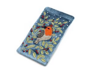 The Dusky Blue Velvet Glasses Case with a Robin motif offers a refined blend of protection and style. Crafted from soft velvet, it cushions your eyewear against scratches and impacts while adding a touch of sophistication. Its compact design fits easily into bags or pockets, making it an essential accessory for safeguarding your glasses wherever you go. Ideal for those who value both elegance and practicality.