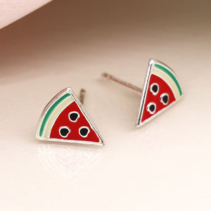 Who says jewellery can't be playful? These sterling silver enamel watermelon stud earrings are the perfect little pop of fun and charm for your ears. Sweet and quirky, they'll add a touch of whimsy to any outfit.