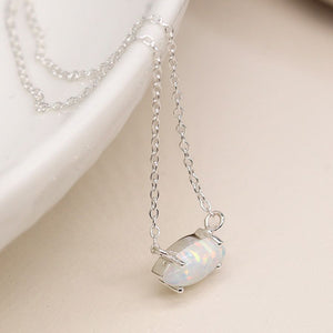 POM Sterling Silver Marquis Opal Necklace