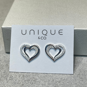 Unique & Co Silver Zirconia Double Heart Earrings