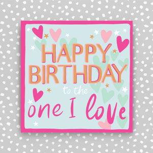 Happy Birthday to the one I love. Finished with foiled lettering. Supplied cello wrapped or nested with an envelope.