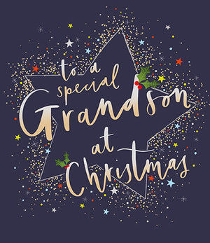 Greet you Grandson in the most lavish of ways with this festive greeting card from Paperlink. Crafted from card stock, the card boasts a high quality finish with a dark background adorned with a single large gold star surrounded by a multitude of colourful stars and lights. Impart your wishes through the front message: ‘To a Special Grandson at Christmas.’ this exquisite card is sure to make a lasting impression. This card if from the Cloud Nine range.