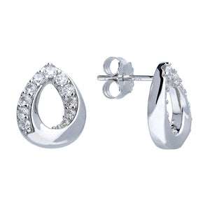Sterling Silver CZ Twist Teardrop Stud Earrings